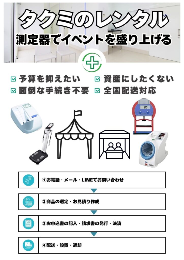 株式会社タクミは、イベントで必要な医療機器や検査機器のレンタルを開始しました。